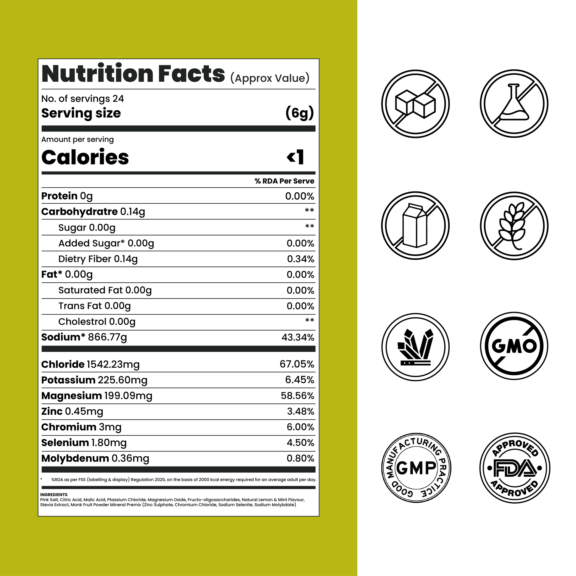 - Stevia & Monkfruit : Plant-based sweetness with zero sugar, zero crash.